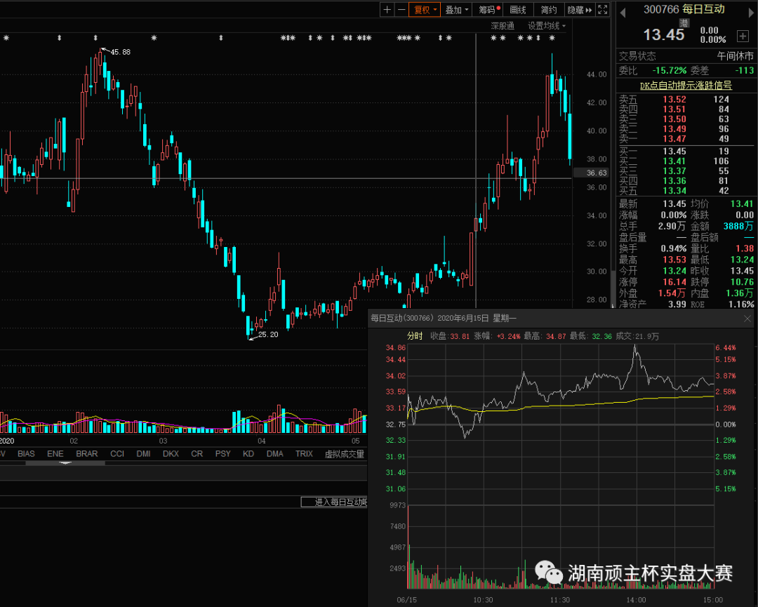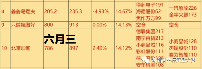 6月3日,主人公空仓,比赛收益已经达到了14%, 作为首板玩家来说,已经超额完成了自己的月度目标。