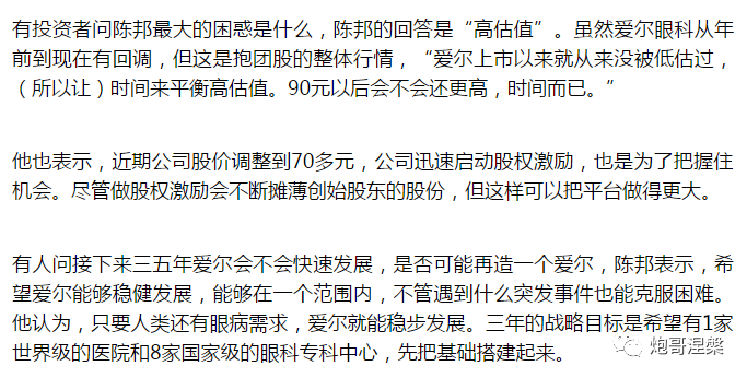 都说管理层是最了解自己公司的,爱尔眼科刚开了股东大会,我基本上看完了会议记录的全部内容,其中有一段颇有感触: