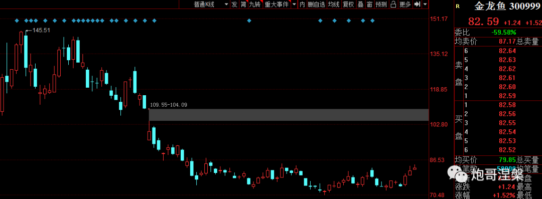2、找反弹还没太大的滞涨赛道股暂时替代。同样是赛道股,上次崩盘完,还是有反弹幅度比较小的,比如说粮油龙头金龙鱼