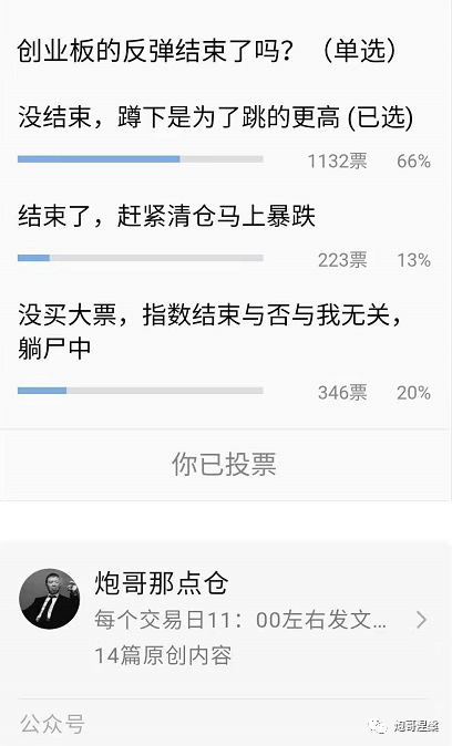 新的午盘号(炮哥那点仓)来了,公众号的二维码码放下面了,识别关注即可。每天正式在该号推送午盘文章,时间还是每个交易日11:00左右,大家关注上,注意查收。