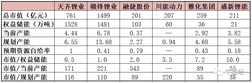 大家都知道赣锋锂业和天齐锂业两者并称为国内“锂业双雄”,在市值和当前产能比相当的情况下,谷主选择了更有弹性的天齐锂业。其原因是天齐锂业有雅宝、SQM的包销协议,所以碳酸锂的拿货价比较低;而且自给率高,权益储能高,因此碳酸锂涨价的对其构成的弹性要高于赣锋锂业。