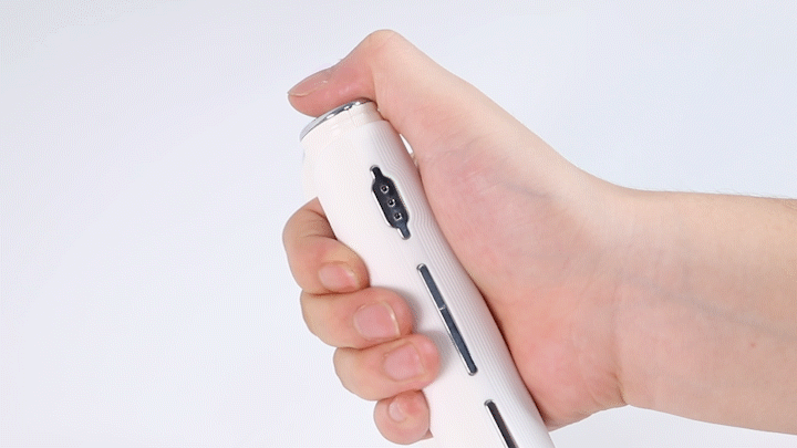手握住把柄的时候,触摸开关与皮肤接触,筋膜刀才会开始工作,没接触就会自动停止。