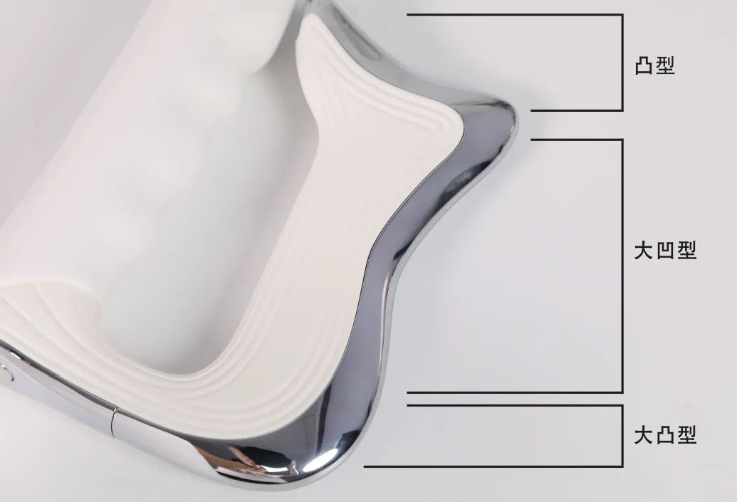 1、曲面设计符合人体工学,握感轻不滑手,刮刀凹凸有致,贴合身体每一个部位