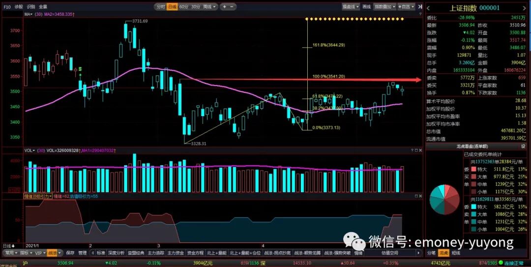 从走势上来看,今日沪指以一根带上下影的小阳线报收,全天是防守3500点整数的争夺。对于现在的走势,其实《点睛》中应该有较为明确的惯性,就是上方3540点附近的压力成为指数重要的关隘。从走势上来看,今日救助指数完成3500点的防守是券商,未来突破3540点关口的重点板块还得是券商。主流资金不出力,即使突破也无力。