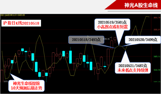 截至周二收盘,新的沪指未来3个交易日的生命线依次位于3501、3499、3487点,依然位置较低,还渐次下行,全部在周一的收盘3518点之下,惯例是在下方支持沪指续涨。周三的3501点位置虽然不高,在周二的收盘3529点之下28个点,但是生命线上的一个高位小拐点,不排除短震的可能,不过周四、周五的生命线位置持续走低,尤其是周五的3487点,是未来10个交易日的最低点,不仅提示该点位有较强支撑,而且沪指通常提前生命线1-2个交易日见短线小低点,所以,周三即便有短震,后半周仍有望继续反弹。