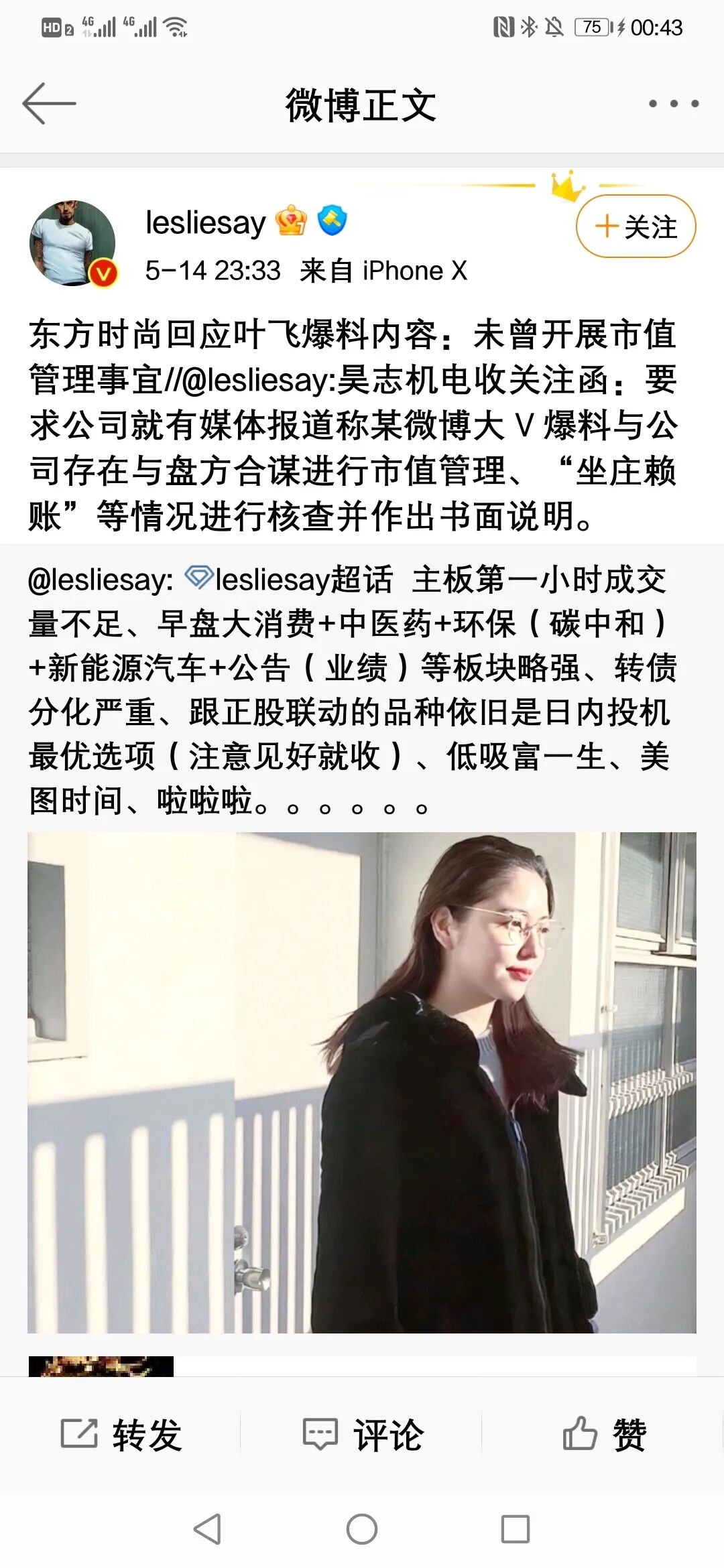 值得注意的是,此次叶飞还在朋友圈“点名”了维信诺(002387.SZ)、昊志机电(300503.SZ)两家上市公司,直指上述两家公司开展“市值管理”。