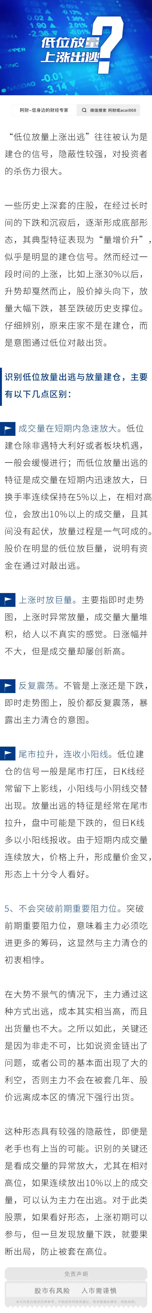 【阿财学堂】什么是“低位放量,上涨出逃”?