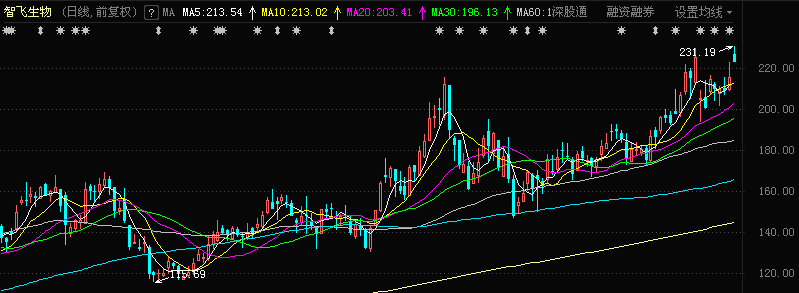 这几天全国各地的疫苗接种意愿显著提升,受此消息影响,智飞生物盘中一度大涨7%,股价创231.19元的历史新高,市值一度超3600亿元。不过随后,疫苗概念股涨幅收窄,智飞生物涨幅有所回落,收盘上涨3.26%,报223.05元,总市值为3569亿元。