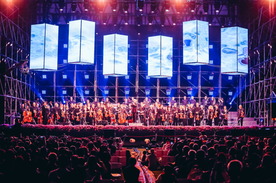 一般古典交响乐都是在室内通过自然声场传递给台下的观众,中间不需要通过介入其他人为手段进行干预。但是当把这个舞台搬到户外,并且是一个规模不小容纳千人的场地,所有音乐传递观众的途径就会变得大相径庭。