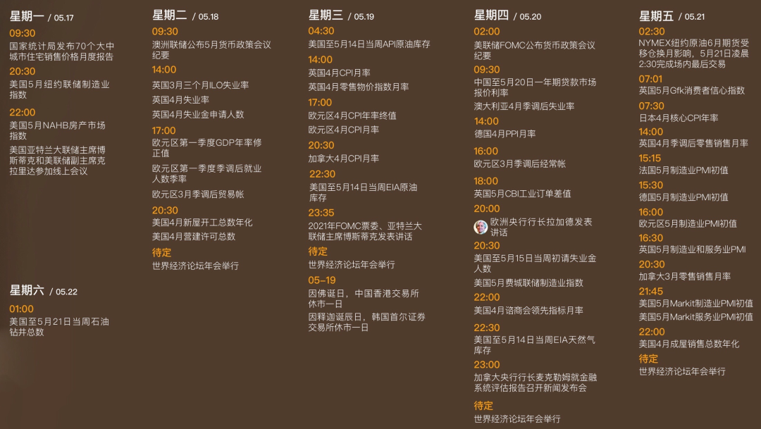 本周美元指数弱势震荡,美三大股指小幅收低,先抑后扬。黄金、白银本周小幅收高,原油强势震荡,伦敦有色小幅下跌,CME豆类、玉米高位冲高回落,美棉大幅下跌,原糖先扬后抑,大幅上涨以后小幅调整,比特币大幅下跌以后弱势震荡。