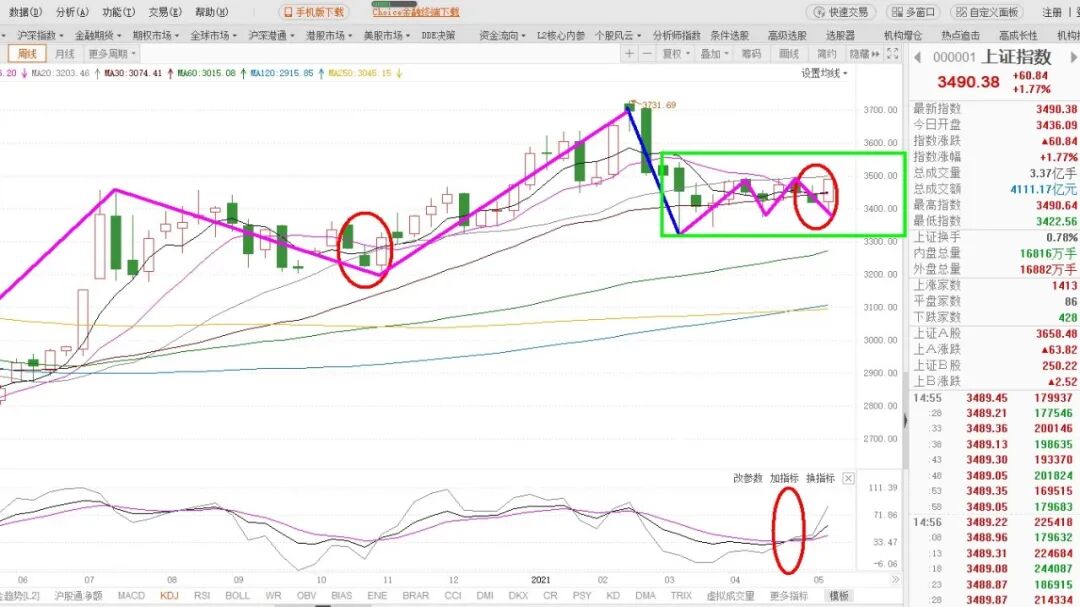 本周大盘出现了反弹,周五压制大盘很久的60天均线终于被突破。我在5月5日的文章中谈到了时间之窗,谈到了60天均线:“大盘在60天均线已经盘整了38个交易日,离时间之窗开启也不远了。”而本周二是60天均线压制大盘调整以来的43个交易日,时间之窗开启,大盘进入反弹模式,周五大盘一举站上了60天均线,下周创3328点反弹以来的新高应该没有什么悬念。问题是一旦攻破23500点之后大盘将如何走?眼下,5天均线已经金叉20天均线,下周一就将金叉30天均线,半年线和60天均线是否能够成为支撑线,下周初就将得到验证。