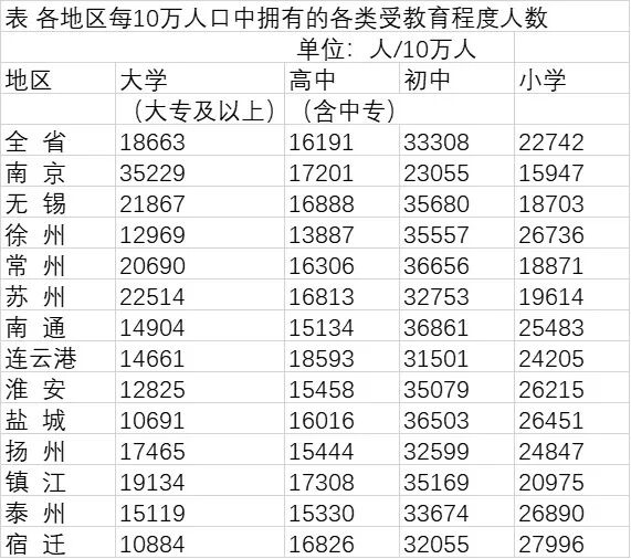 表:江苏13市受教育程度情况(来源:江苏统计局)