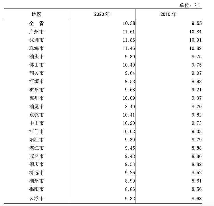 导读 :深圳市15岁及以上人口平均受教育年限由2010年的10.91年增加至2020年的11.86年,受教育年限在全省21市中排第一。