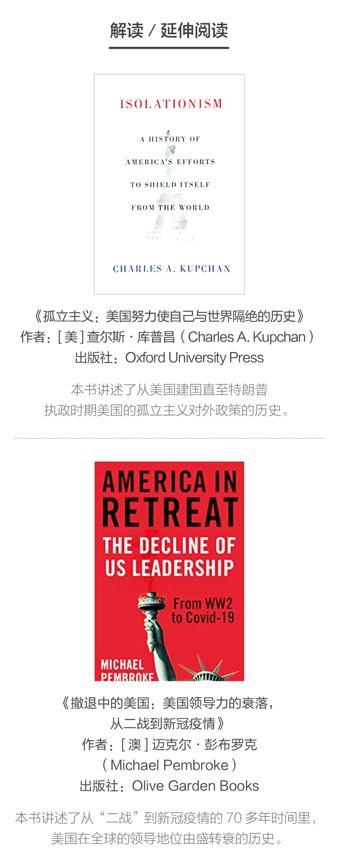 在当今美国有一种流行的论调,给反对在海外使用武力的不干涉主义者贴上“孤立主义”的标签,将其定义为自私和封闭。韦特海姆揭示了这种论调的虚妄,他指出,“孤立主义”的术语在很大程度上是一种修辞武器,用来妖魔化一个基本不存在的政策立场,以此平息对美国海外军事扩张的批评。