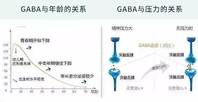 随着年龄和压力的与日俱增,人体自然分泌的GABA会越来越少。 当我们大脑GABA不足,就会出现,焦虑、疲惫、不安等情绪。(这个时候就需要额外补充)