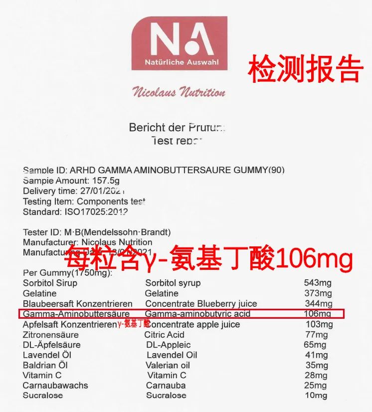 经检测,AHRD阿赫德睡眠软糖的GABA含量是远远高于同类产品的。 实力检测每粒软糖GABA足足106mg, 在效果方面毋庸置疑!