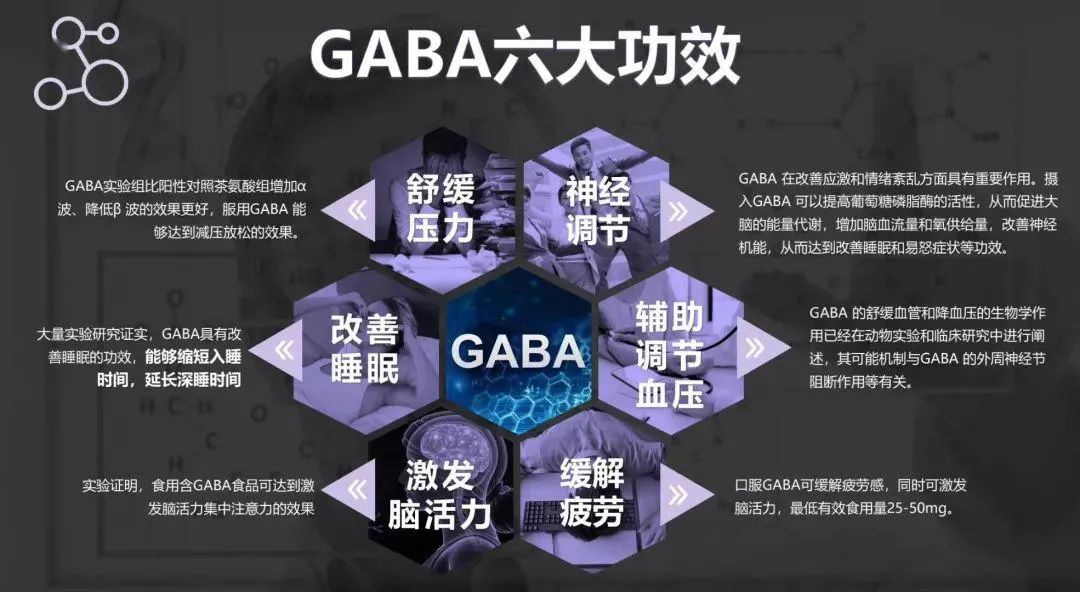 哈佛大学教授帕特里克•傅勒说:GABA被全球公认是大脑中 “最放心的神经镇静剂”。 在神经调节方面有着十分优秀的表现。