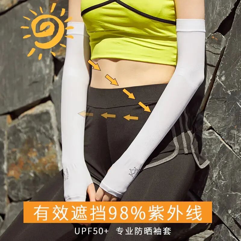 符合人体工学设计, 采用了分段编织工艺,让冰袖更加贴合手臂形状, 纤细处收紧显线条,关节处还特别设计了松紧。