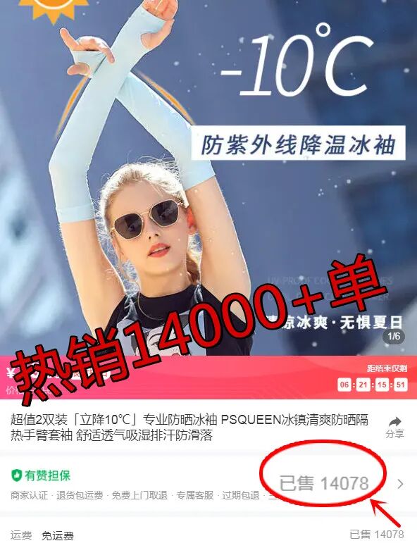 这款PSQUEEN防晒冰袖,上架几个月就 热销14000+单,回购率超高!