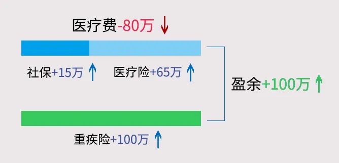重疾险额还可以额外赔付的100万现金,刚好拿来弥补患病的工作损失,这样一场大病下来也没影响到一家人正常生活。