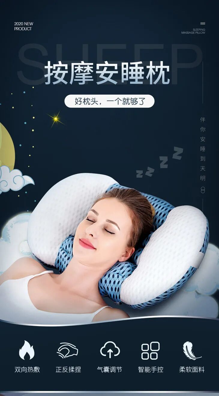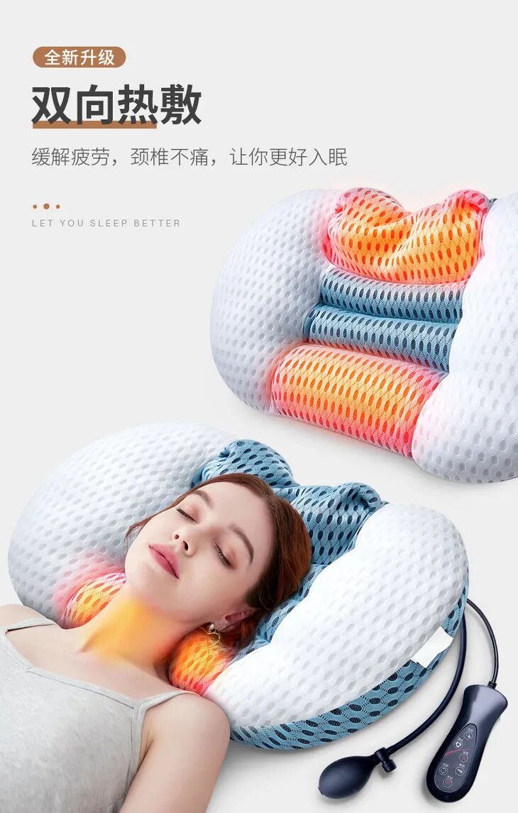 这款 按摩+热敷+牵引枕头 于一体的枕头