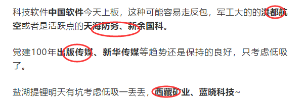 今天指数再度暴走, 券商、医疗、权重 统统起飞, 但是涨停板数量真是用脚指头都能数的清楚 ,好些个还炸板了,有可能你今天打个板,然后还亏钱了。这样就容易双重暴击痛苦,所以模式还是要低吸,杀跌就吸,成功率高一些。具体细分下,其实券商的毒性好像真解了,断断续续的炒了一个多礼拜, 但位置还是不高,如果能够在之后形成共振,或许真的要爆一波狠的。 现在不知道是不是大主力在拿货,反正要有点券商的仓位了。短线股倒是很尴尬, 没啥强的, 低位军工、科技开始异动,昨天也点了下,低吸有肉。操作上,券商难得吃肉,不过 中国 银河 还是算垃圾品种~ 宁德时代 赚了1.8%走了,隔日5个点也挺香, 啤酒 亏了2个多点,还好买的不多,真不如白酒,他娘的。日内操作上,今天开杂货铺,就不晒了,明天吃肉的吃肉,出局的出局。大票、医药、100年都有。 午后策略: