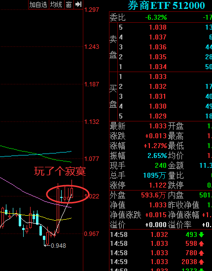 我们看券商etf走势比较直接,4天下来平平淡淡: