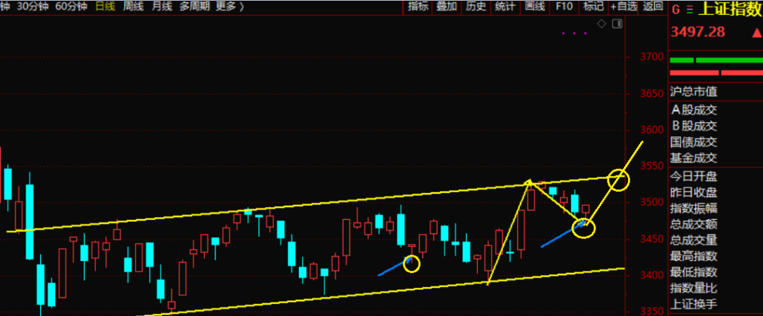 当然,向下也是继续防3450-3460点区间,如是意外向下打破,那这个通道的下轨势必也难形成支撑,就会去破3月份的低点。