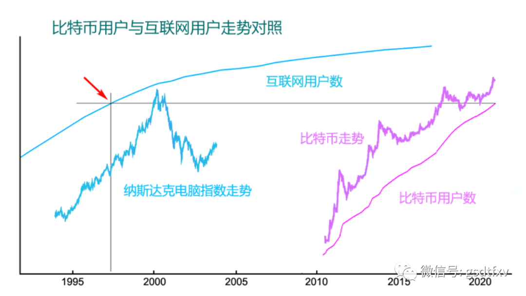 去年Covid-19疫情肆虐全球,迫使美联储拍胸口写包单无限QE,使得全球资产价格飚升,比特币价格去年3月份“仆街”之后一跃而起,持续上升。去年6、7月间,美国灰度公司委托调查显示,比特币在美国渗透率正冲击10%重要关口。今年2月初,比特币用户数估计值与1997年初互联网用户数相仿,且用户增长速度更快。