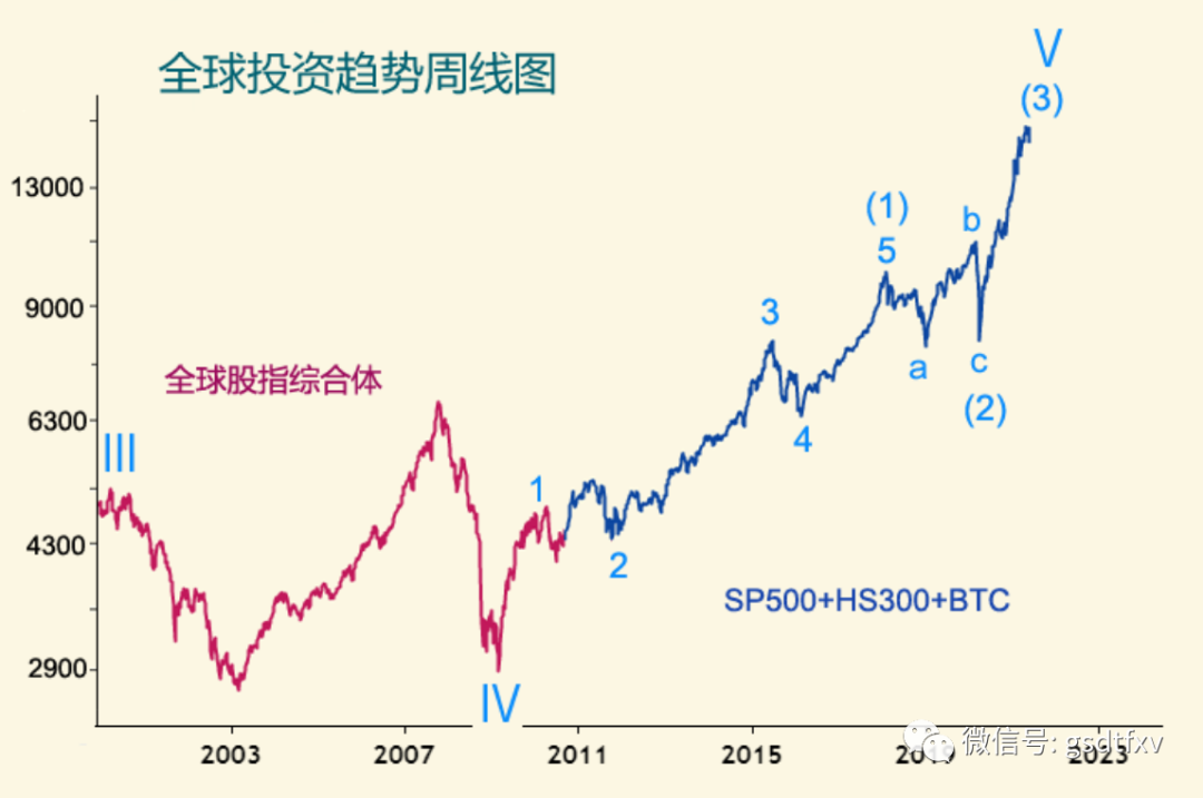 作为普通投资者,将全部身家投入加密货币风险太大,刚出来工作年轻人则可以一试,因此笔者将标普500指数、沪深300指数及比特币按照一定比例勾画出全球投资趋势图。图中2010年7月以前为全球主要指数综合体,之后则是SP500+HS300+BTC(按一定比例)走势。