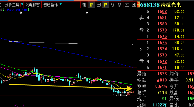 贵研铂业 浮盈,持股待涨,图形里全是下影线,在26.44之后,并未出现任何放量跌,代表没有资金出局行为,因此这里是在盘面不好的上周本周,资金努力维护着横盘稳定的走势了。在如今盘面好转之后,其中的资金有望发力启动。
