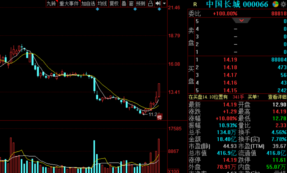 今天另一个表现好的方向就是低位的。像阿7前面说过的低位科技股,中国长城今天涨停。这种就属于赔率好的。