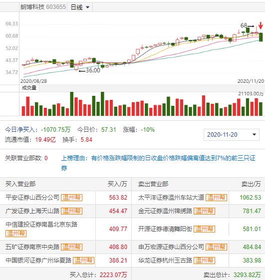 观察A股市场,庄股一般是流通盘小、业绩差、股权高度集中、股价暴涨暴跌。有市场人士表示,兴业科技流通市值有48.99亿不算少,通常这样的股票都会有操纵,只是不那么明显。但朗博科技上周五龙虎榜显示,清一色是庄股席位温州帮。