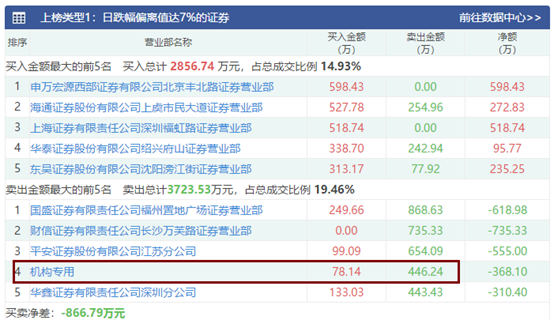 兴业科技上周五盘后公布的一日榜数据显示,龙虎榜资金净流出866余万元。主买主卖席位并未有任何知名游资现身,而一家机构专用席位卖出466万元。