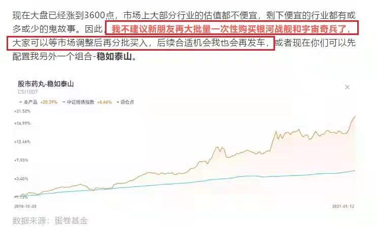 后来春节回来市场果然就出现了-20%级别的调整,但稳如泰山最大回撤才刚刚达到4%,泰山太稳影响了我的判断,我当时只是大家发车加仓抄底👉《 难熬的时刻来了,发车 》,没有呼吁大家可以卖掉泰山加仓,看看后面市场给不给机会吧。
