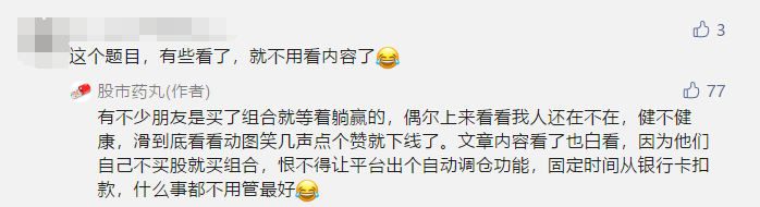 从总量来看,经常读我文章的朋友里面约有1/2跟投了基金组合。但我从前段时间就怀疑,有部分朋友买了组合就去挂机,平时连文章都懒得看,偶尔上来看看我有没有划水摸鱼,看完动图点个赞就下线了。