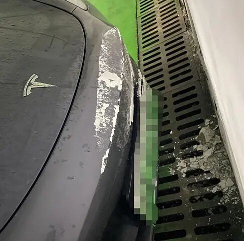 5月13日晚上, 在杭州滨江一小区车库里,一辆特斯拉Model3在一头撞上了墙,好在人无大碍。