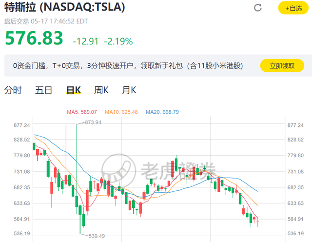 截止今日美股收盘,特斯拉一度下跌4.8%,最终收跌2.2%,每股报576.83美元,较1月下旬所创逾900美元的纪录高位回落36%。