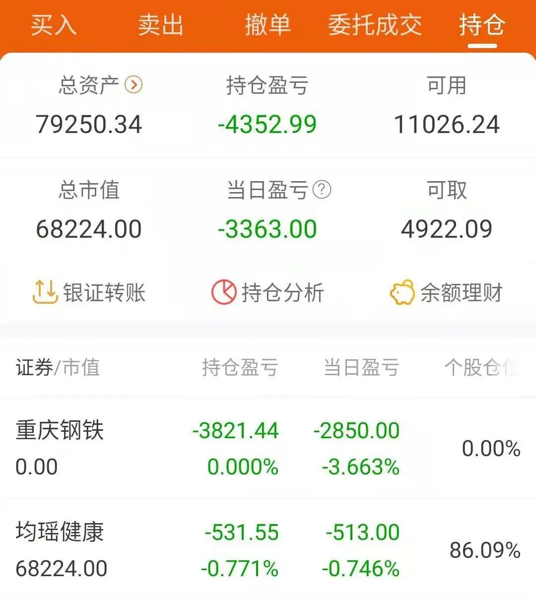 我的总资产,又回到7打头了,希望明天的均瑶健康,也能像今天的重庆钢铁一样,来个峰回路转。