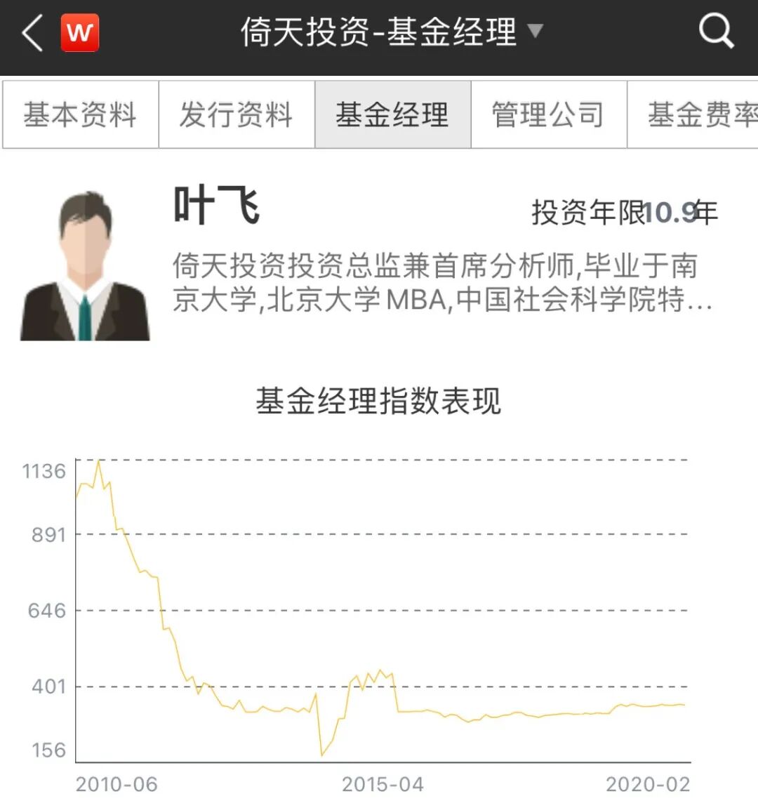 2010年,叶飞成立倚天投资,陆续发行多支基金,除了他自己常说的351%收益基金(2014年上半年,金额不大,后来又全部跌回去)之外,其余基本全亏。