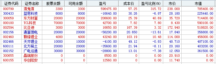 刺客持仓: 酒鬼酒、蓝思科技、东方财富、TCL科技、比亚迪、通富微电、赣锋锂业、天齐锂业、北方稀土、广电运通