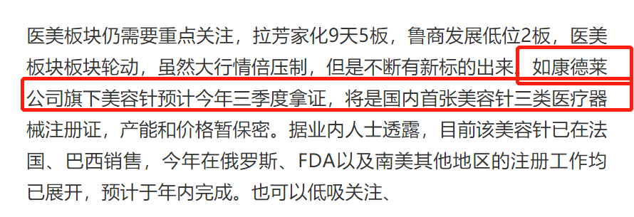 题材的复苏,医美是必备选项,高位的震荡,低位的补涨如雨后春笋,从女人的医美已经传导到了植发、美瞳、牙科等。今天鲁商发展2板,拉芳家化9天5板,景峰医药涨停,尾盘 奥园美谷、朗姿 等都有抢筹迹象,关注明天能否回流。午盘提示的康德莱,中午低吸,随便都有4个点,不香么?