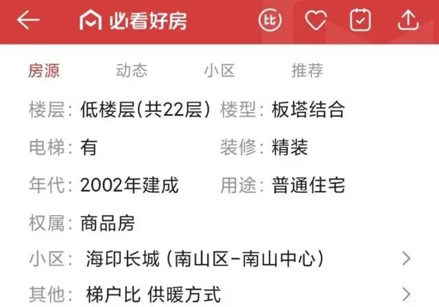 位于南山中心区的海印长城也有降价情况,该楼盘配套的学位是附属南山二外学府中小学。贝壳网显示, 该楼盘一74平米房源近两周降价两次,降价64万。