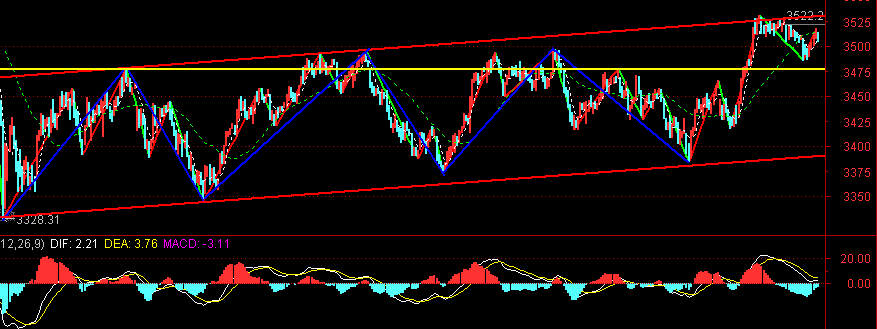 上证5分钟K线图中这三天围绕上方中枢窄幅震荡,回落力度不大,因此极大概率后面还有上涨,建议持仓待涨。