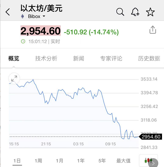 特斯拉2月8日宣布,将使用公司现金购买该数字资产并接受比特币作为购买其车辆的付款方式,带动比特币上涨。如今比特币已经吐回特斯拉宣布以来的所有涨幅。比起近65,000美元的纪录高点,这个全球最大加密货币已下跌约40%。 近一个月以来,比特币走出了“上蹿下跳”的行情,年内比特币行情也与马斯克脱不了干系。 5月12日,特斯拉CEO埃隆·马斯克表示,特斯拉暂停接受使用比特币支付,理由是担心比特币挖矿影响环境。比特币随即疯狂下跌。 周一,马斯克回应一位网友的帖子引发人们对于特斯拉可能已经出售其比特币资产的猜测,比特币再度大跌,一度跌至近42000美元。马斯克几小时后作出澄清,称特斯拉“并未出售任何比特币”,比特币随后回升至45000美元以上。 此外,以太坊价格也在5月12日达到创历史新高的4371美元后一路走跌,日内已跌破3000美元/枚大关,现报2939美元,日内跌幅超12%。