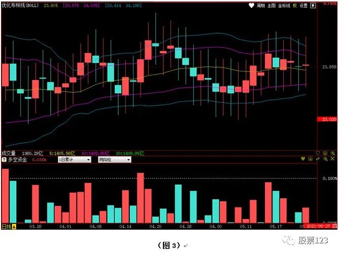 今日两市涨幅超过3%的个股387只,其中涨幅在9.9%以上的个股73只;跌幅超过3%的个股252只,其中跌幅在9.9%以上的个股5只。图3所示为指南针特有的0Z指数K线图,从图中可以看到,今日0Z指数小幅高开,经过全天震荡后,最终收出阳十字星,收盘位置依然处于优化布林中轨上方。可见当前市场整体走势仍相对较强,场内多数中小盘个股虽有震荡,但短期向上趋势依然保持较好,一旦多方连续发力,行情将有望快速上行。