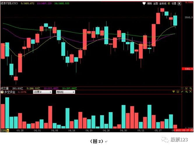 再看图2,今日大盘小幅高开,但多方却没有抓住上攻机会,以致指数再度下探,并跌破了3500点,所幸5日成本均线的支撑依然存在,加之13日成本均线上穿34日成本均线形成金叉,使得下方支撑力量得到进一步加强,故此市场并未大幅下挫,最终收盘点位也仍旧处于5日成本均线上方,可见当前行情短期强势格局并未改变,只要多方及时发力,后市就有继续震荡上行的可能。