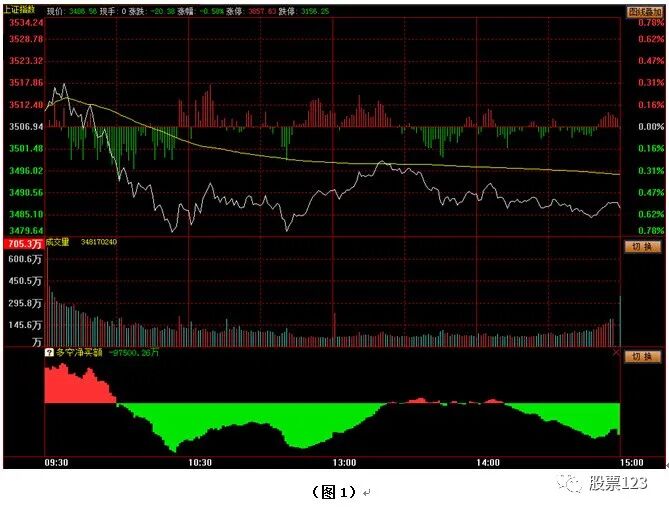 如图1所示,今日早间开盘后,多方曾试图上攻,但由于力度不足,以致大盘只是略作上冲就遇阻回落,指数很快跌破3500点整数关口,好在市场没有持续大幅杀跌,而是在3480点附近逐步企稳,午后大盘虽有反弹,但未能重新站上3500点,随后指数逐渐回落,最终以3486点收盘。