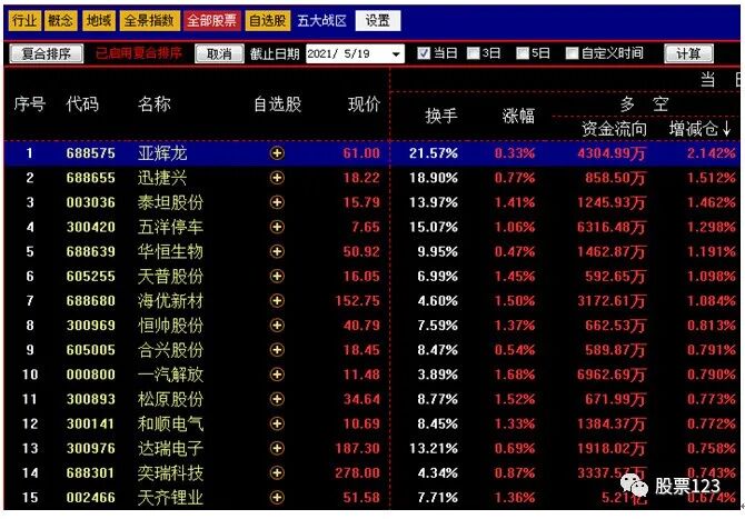 从五大战区的情况分别来看,今日沪中大盘战区与深中大盘战区均为资金流出状态,其余三个战区则均为资金流入,其中创业板战区资金流入超过25亿,深中小盘战区的资金流入额更是高达64亿,可见虽然大盘小幅回探,但场内多方人气依然较高,整体上资金继续以流入为主。在这种氛围下,后市行情有望继续上行。建议大家在控制好仓位的同时,密切关注近期有资金积极流入且刚刚出现开仓信号不久的个股品种,并逢低逐步介入。
