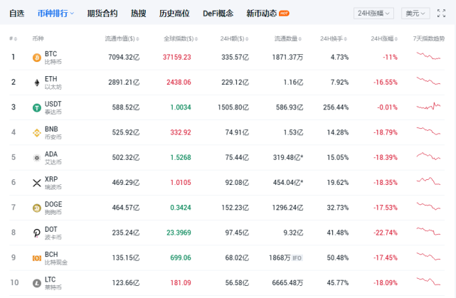 强监管之下,5月21日晚间,虚拟币再现跳水行情,BTC、ETH、BNB、DOGE等多币种24小时跌幅均超10%。